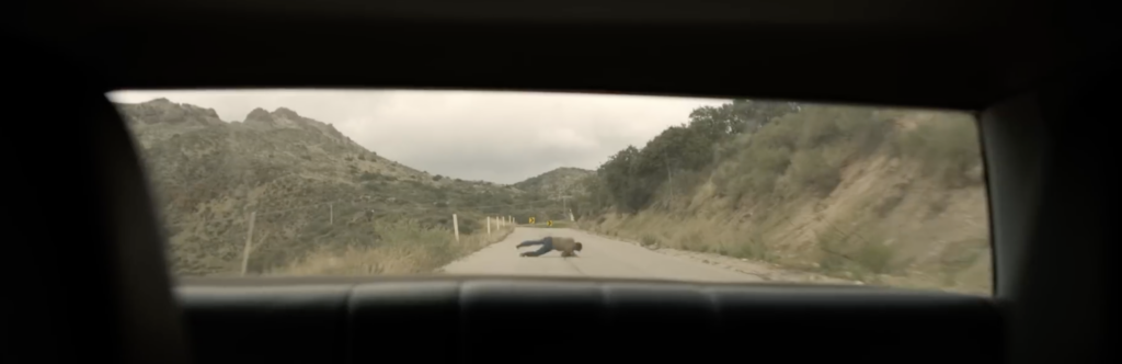 On the other side of that though, if this is after Hal jumps out of the car he is way too clean looking for tumbling out of the vehicle at a high speed. The jacket isn’t torn up and he has no visible damage to his hands or face. I did also slow down the footage from the teaser to see if the roads matched up and they do not.